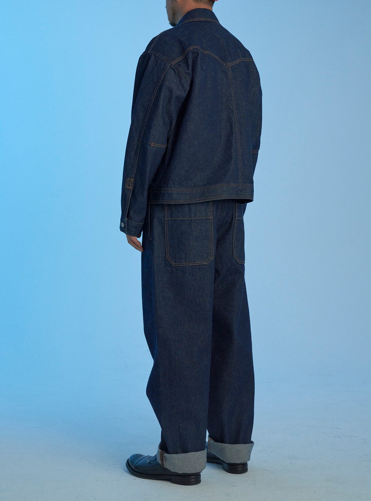 - 데님 원단의 최상급인 콘밀 원단을 활용한 워싱 데님으로 만들어진
